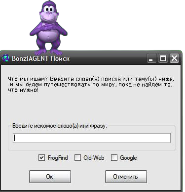 Добро пожаловать в мир BonziAGENT! Он будет исследовать Интернет вместе с вами, как ваш личный друг и помощник! Он умеет разговаривать, ходить, шутить, просматривать веб-страницы, искать информацию, отправлять электронные письма и скачивать файлы, как никто другой из ваших друзей! И самое главное, он БЕСПЛАТНЫЙ! Загрузите BonziBUDDY прямо сейчас — БЕСПЛАТНО!